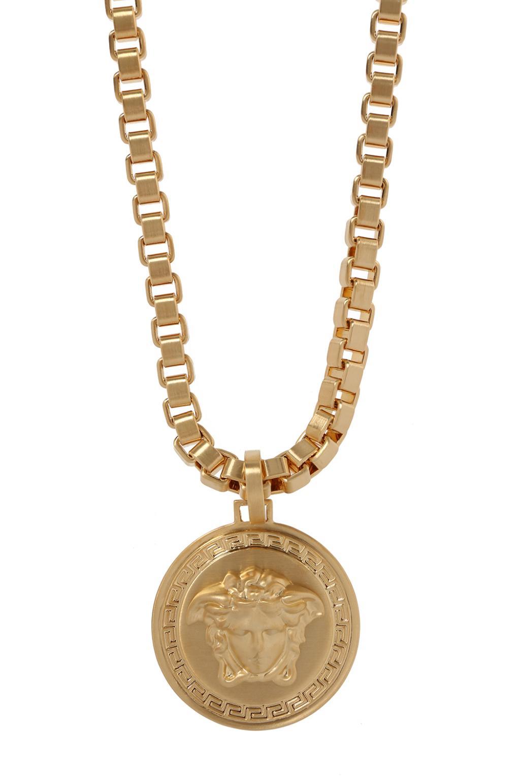 Versace logo gold necklace & pendant retail $775 men's or women's. Each piece is made of yellow gold while the. Versace gold icon medusa necklace /retail price in official website is $495 now. Gianni versace gold medusa necklace w/ box, tag & certificate. Versace versace gold necklace features necklace versace metal 100% color gold ss21 product code dg3g402djmtkot women.