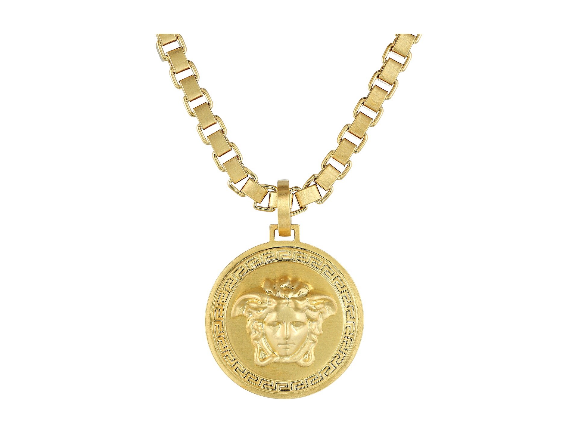 Circular pendant featuring signature carved medusa and greek key pattern. Authentic womens versace medusa pendant tribute gold colored necklacefrom $265.00. Versace for h&m gold rhinestone panther leather chain choker necklace. Versace 24k gold plated medusa chain necklace as seen on brennen taylor in his video! Gianni versace gold medusa necklace w/ box, tag & certificate. Gianni versace gold medusa necklace w/ box, tag & certificate. Watch this video to see dan's new pet. Be the first to review this product. Gianni versace necklace pendant gold gp medusa 100% authentic made in italy. Shop silver necklaces versace jeans women online at yoox latvia. You'll get an email if this. This necklace boasts an alluring, unique gorgeous golden strands hold two versace medallions. Choose silver or any color gold plating for both chain and pendant.