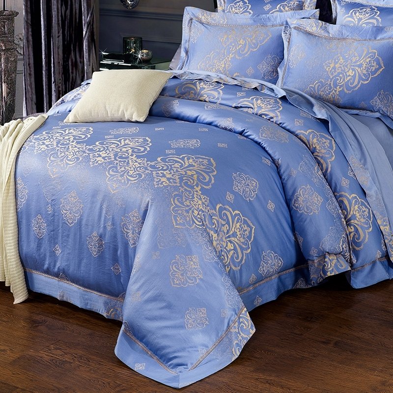 The golden iron bed frame is also a good choice if you want to get such a classic style. Our unique range of sofas, beds, dining table, wardrobes, home temples and in solid wood for home palaces has been delivered all over india and to all major countries across the globe. Sheer elegance is what best describes this bedding set. The most common blue gold bedding material is cotton. Alternatively, for something a bit different, try blue.