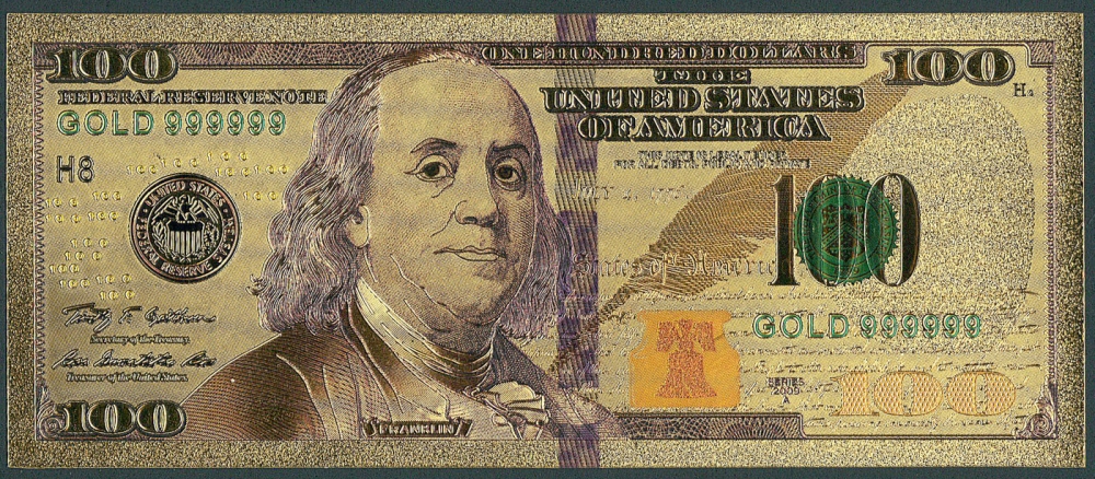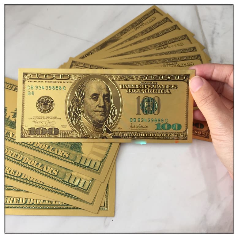 Organize your money so that the golden bill is next to your higher denomination bills. A single gold foil 100 dollar bill for good luck. Shop the latest hundred dollar bill deals on aliexpress. Monetary denominations of $ 100 in a large number of slowly falling down on black background. Historical representation of gold certificates of presidents and states.